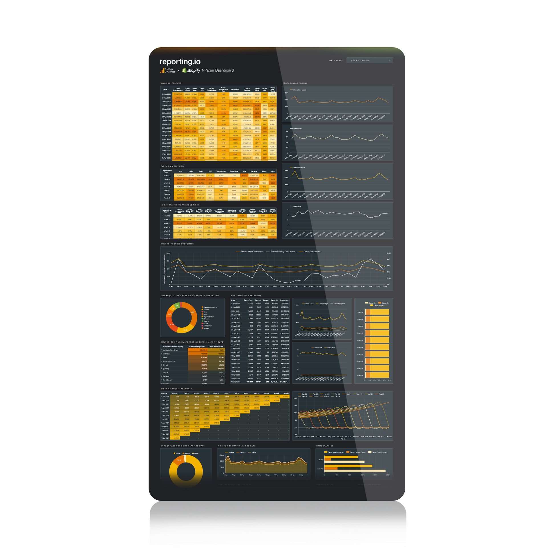 Never create another boring report again with our Shopify x Google Analytics 1-Pager Dashboard.